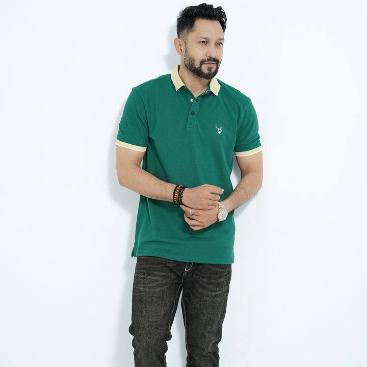 Teal Green - Double PK Snap Button Polo Shirt